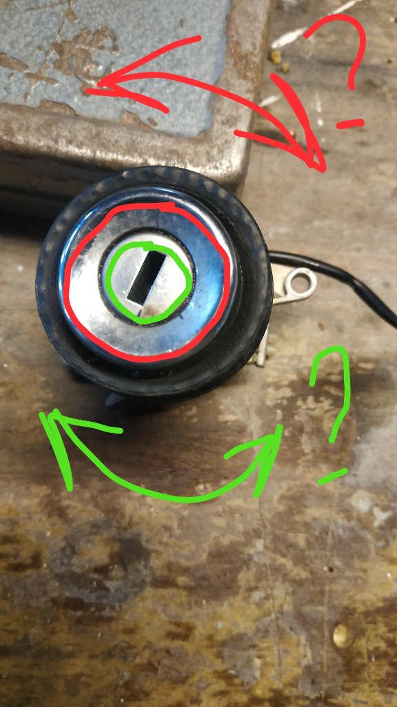 И глупый вопрос при повороте ключа, что вращается? Полагаю зелёная стрелка?