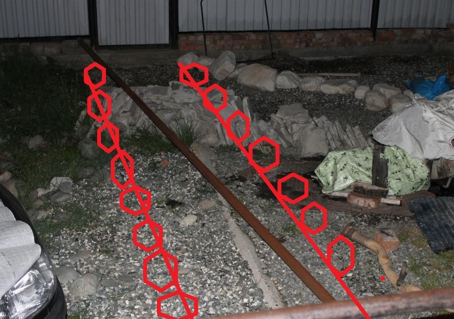 На втором фото - пойдёт дорожка (вокруг будет всё залито), вот борта дорожки будут тоже из камня...Наполовину закопаю их и всё!