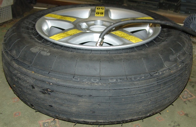 В багажнике колесо лежит спущенное, маленькое. Перед установкой на автомобиль его накачиваешь и оно раздувается.... Процесс настолько интересно смотрится, что даже снял на видео.