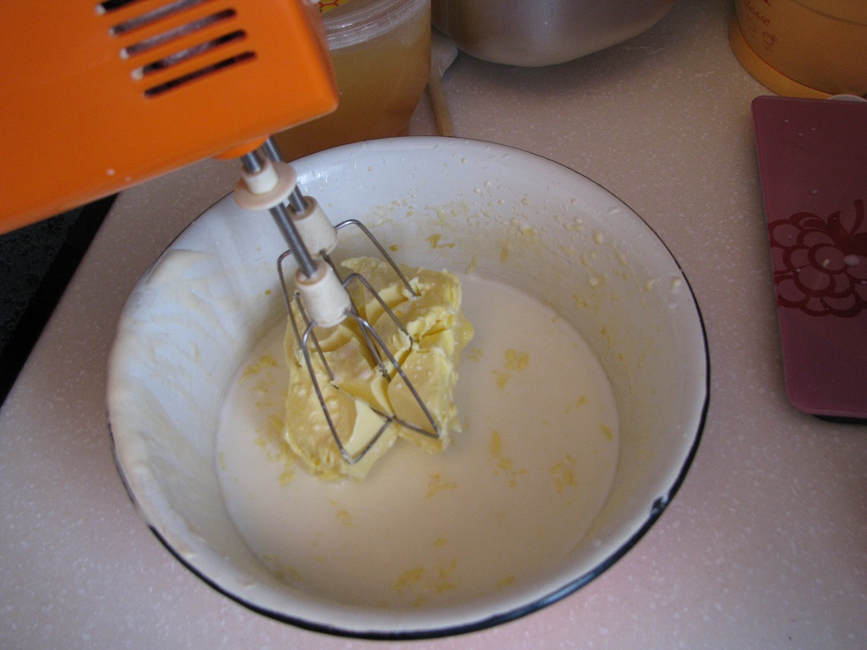 Смешать миксером молоко с маслом не получилось, половина молока оказалась на полу, часть на мне.......
