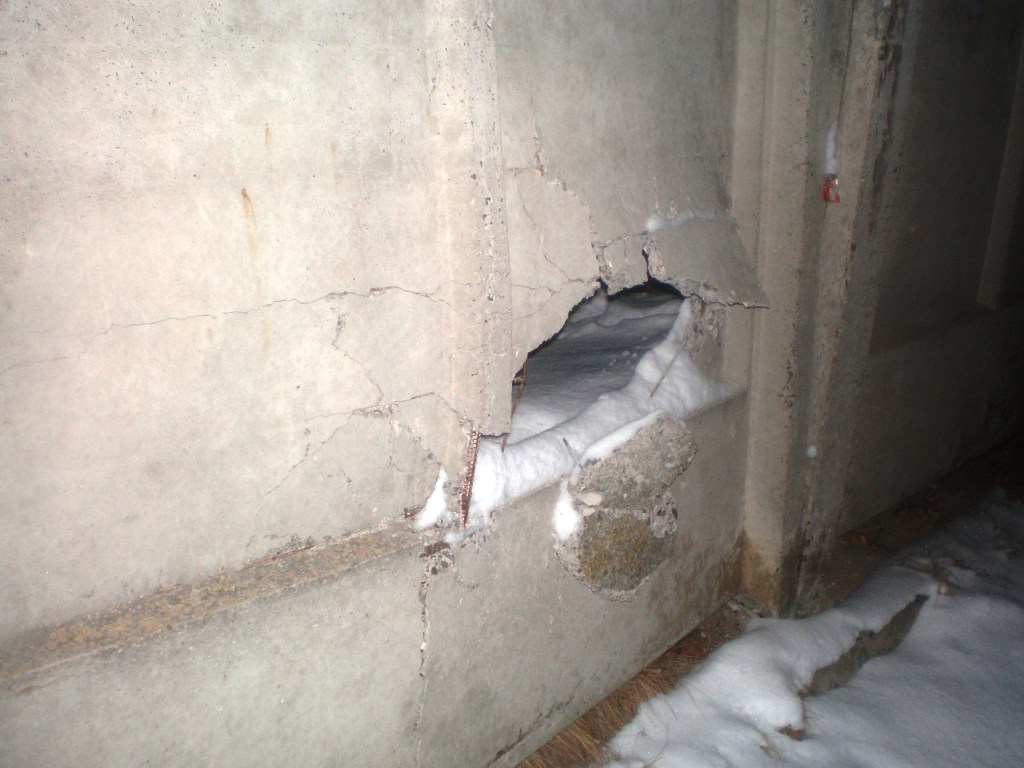 Стена же по-моему бетонная и пробоина в заборе как-то высоковата для бампера