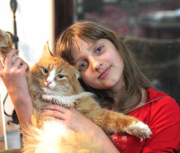 добродушный кот, любимец детей и взрослых, дети его таскали и тискали , спал с дочкой - в длину вытягивался рядом ,разговаривал на разные голоса , и муркал, и мявкал, песни пел...
