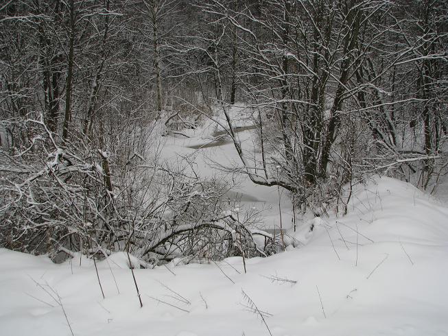 Чем дальше от Москвы, тем белее дороги придорожный ручеек, остановился посмотреть - рыбы -нет. Красота вокруг, деревья в снегу, тепло как весной и тишина. Так, не отвлекаться, вперед к намеченной цели.