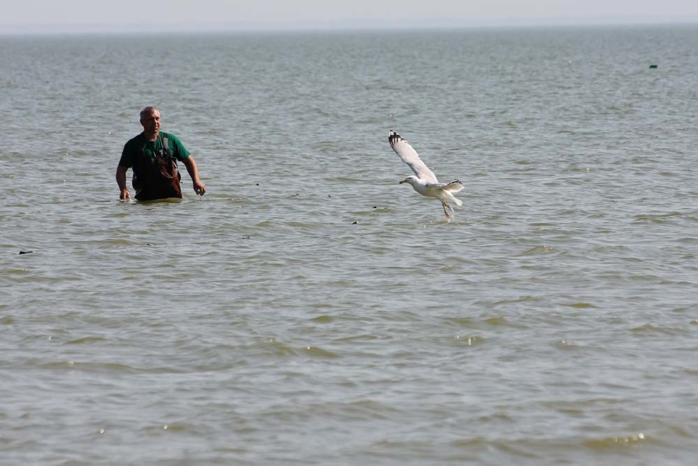 чайка рыбу нагло из сеток жрала ... чуть дядьке на голову не залезла