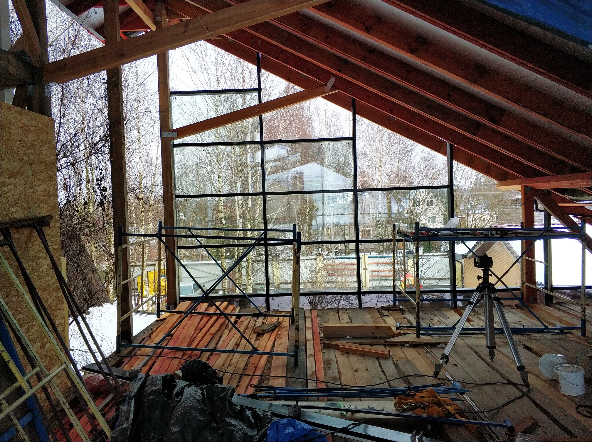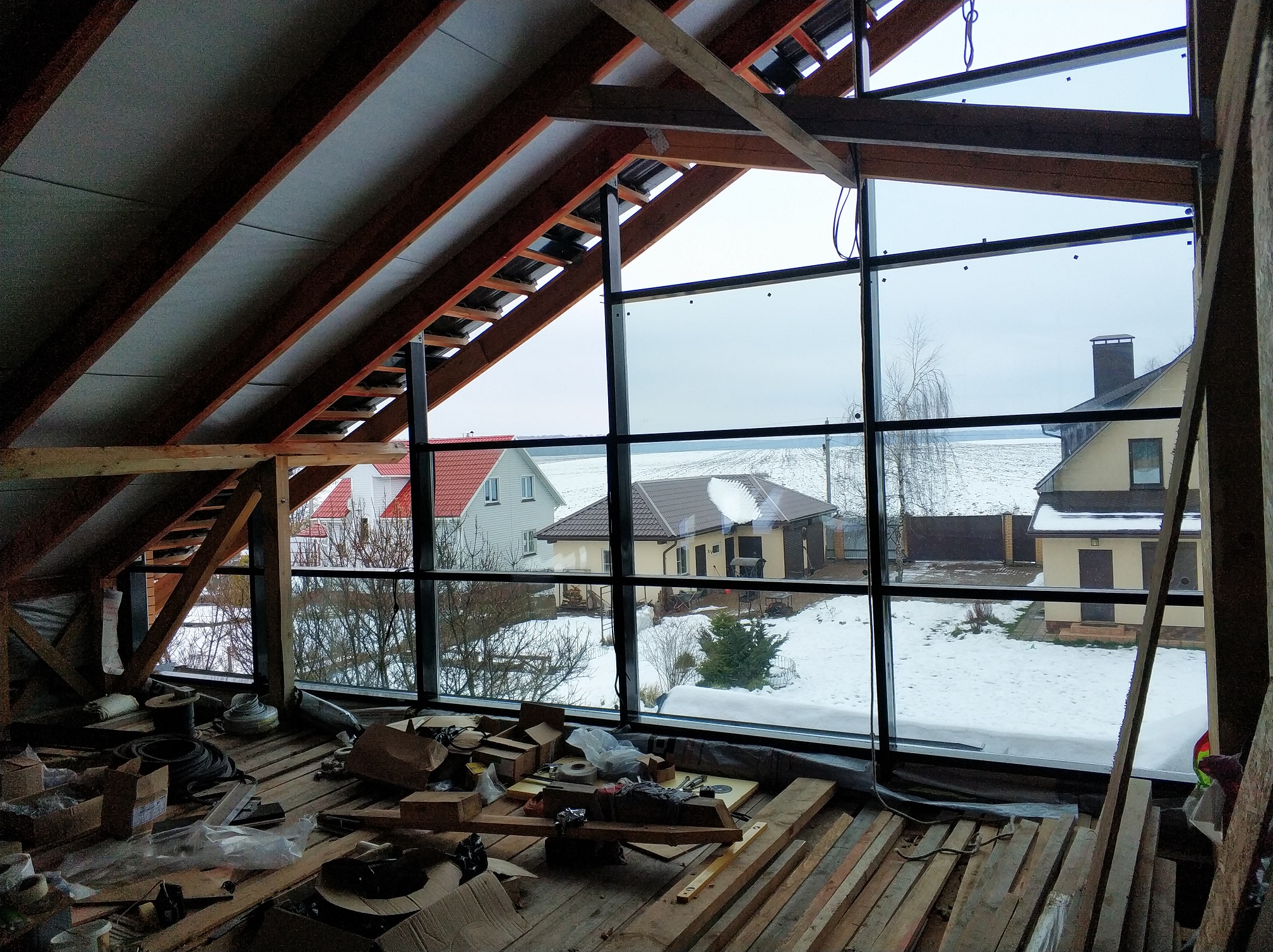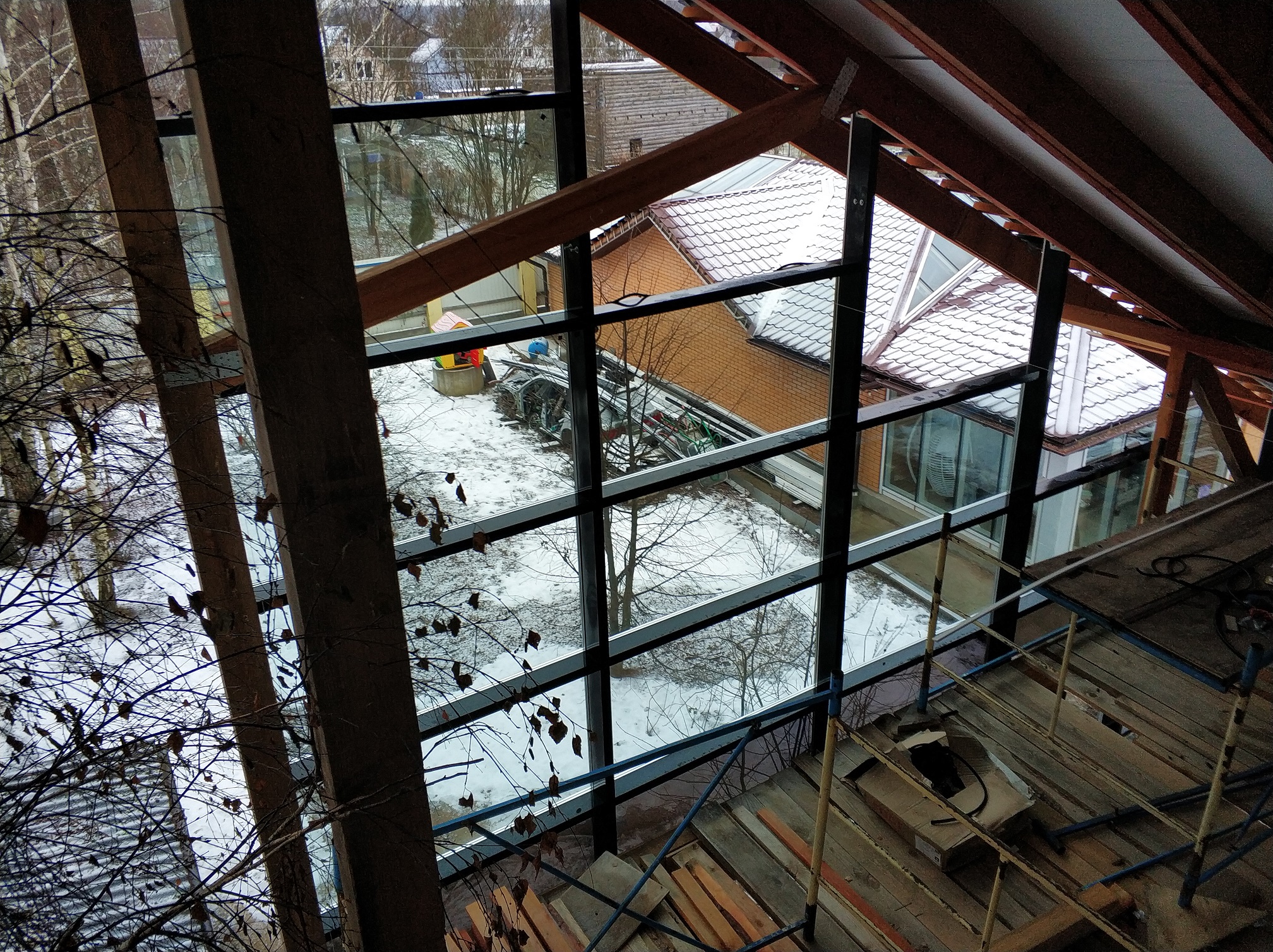 А ещё есть крыша, которая тоже из стекла и его много. И оно не подъёмное в ручную, и устанавливается тоже снаружи. Пока даже не думал, как его туда затащить. А стекло все таки не мешок с цементом. Требует аккуратности.