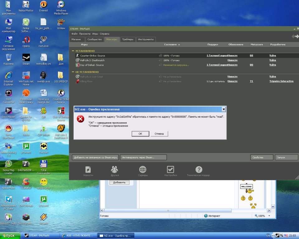 D:\Program Files\Steamrakiim писал(а):Проверь не стоит ли стим у тебя в русской папке или путь с русскими буквами. Типо C;/program files/игры/steam - Так нельзя, игры идти не будут и стим тупит. Путь должен быть английский. А вообще "Память не может быть" является проблемой оперативки. Возможно разгон, гретые планки. Но задроты говорят что это баг программ