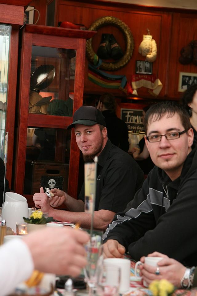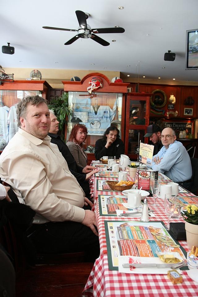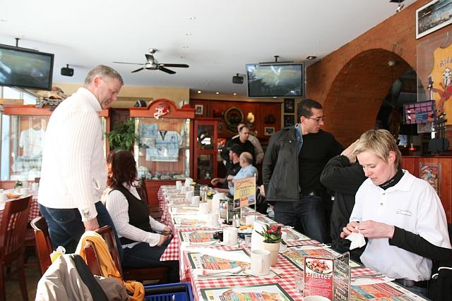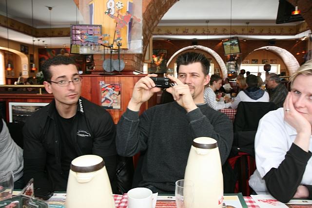 До Гамбурга доехали за 2 часа и 12 минут.Гамбург, Рестаурант "Montgomery Champs", 8.56 и мы первые.Но не долго, в течении 32 минут стоянка пополнилась.В 9.23 нас , ещЁ не все но уже 18 человек, наконец запустили внутрь.9.30 почти кто должен приехали и Бюфет был отрыт.В этом рестауране каждое воскресение с 9.30-13.00 "American Breackfast"-бюфет, за 10,90-€, ну в общем кушай пока стул под тобой не сломается.Всё остальное смотрите сами.