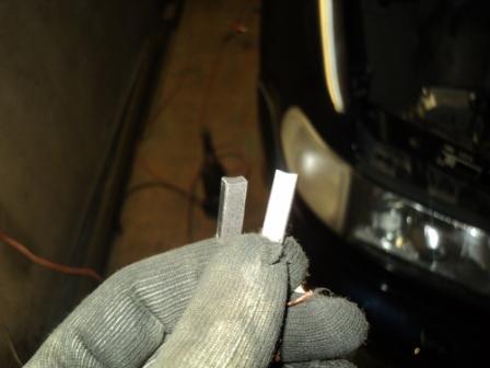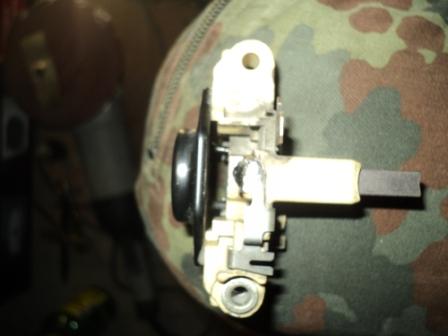 Провода родных щеток зажаты в медных трубочках и припаяны, но мне на помощь пришли кусачки).Чтобы было удобней вставлять провода новых щеток, их надо немного наростить, припояв залуженный проводок. Перед тем как впаивать щетки, их надо доработать надфилем, чтобы была больше площадь контакта.
