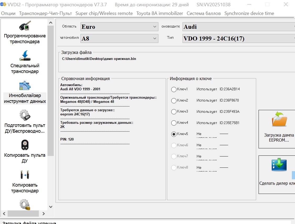 Физкульт привет всем. Требуется прописать ключи в иммобилайзер. Пробовал достать код VAG Eeprom Programmer 1.19. Не коннектится. Дамп с приборки скачал программатором, а вот где там пин непонятно. Может есть у кого IMMOread 3.5.24.5 или какая-нибудь программа, чтобы достать его?