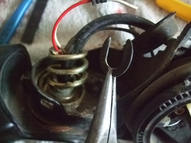 Немного отодвигаем отвёрткой вот эту стопорную скобу, далее берём узкогубцы и...
