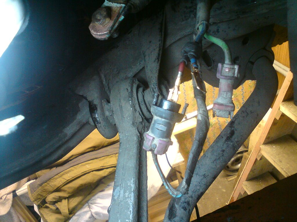 Провода на правом лонжероне снизу, с ямы хорошо видно. Перед работами советую отключить аккумулятор на всякий случай, если не дай Бог такой толщины провод замкнет, пригорит и хрен оторвешь, сгорит все глазом моргнуть не успеешь, так что полюбому отключай(не забудь что после отключения аккумулятора штатная магнитола просит ввести код). Так вот, открути провода, почисти их от зелени, и поставь на место.