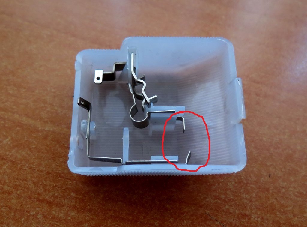 Снял его. Одну клемму снял с верхней конструкции с горизонтальным контактом. Нижняя полоска висела на втором проводе (вертикальный контакт). Т.е. провода были одеты на штатные места (с отверстиями) точно.