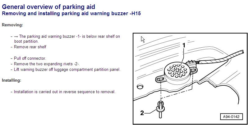 У меня была такая проблема, незнаю как у тебя но у меня задняя шторка, просто понимаешь полку она на клипсах, там сразу видин динамик в пластиковом корпусе как на фотке сверху, отсоединяеш от фишки, разбираеш пластиковый корпус ( можно купить пищалку в корпусе за 20$ ) я динамик оторвал и выбросил, разобрал китайскую игрушку и припоял от нее динамик собрал поставил все работает, только тиховато, музыку надо выключать чтобы слышать. Вот такой колхоз! Ошибку выдавало такуюже как у тебя, так что сомневаюсь что надо лезть в блок?!