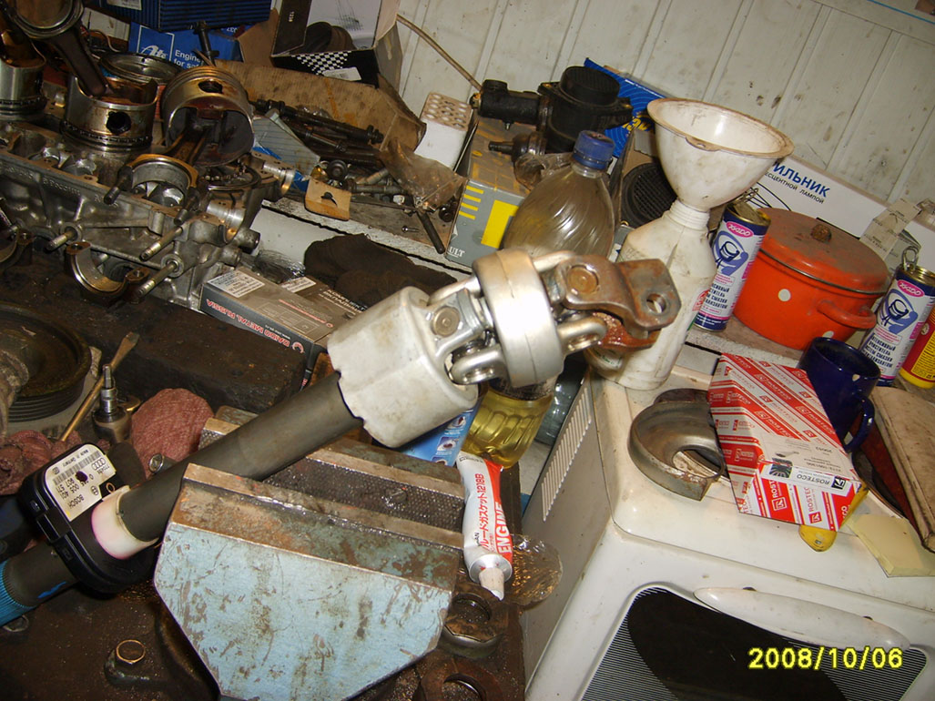 Люфт при снятом валу был ощутим конкретно . Точить крестовину ? Помоему проще разверткой прогнать 8 отверстий под чашки ( нормальных токарей сейчас не найти - нормальные ушли с перестройкойdmc писал(а):Хороший отчет. Расскажи, что со старой случилось? Люфт рукой чувствовался? Не проще было-бы расточить саму крестовину и подобрать(выточить) иголки побольше?