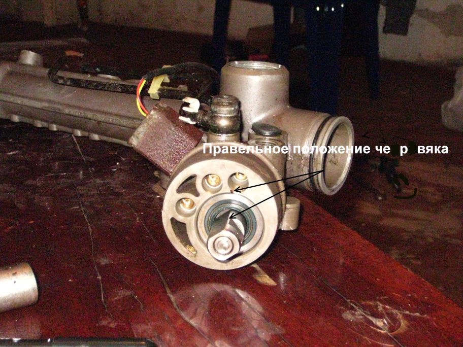- правильное положение червяка относительно штока ,руль полностью влево и смотрим на фото