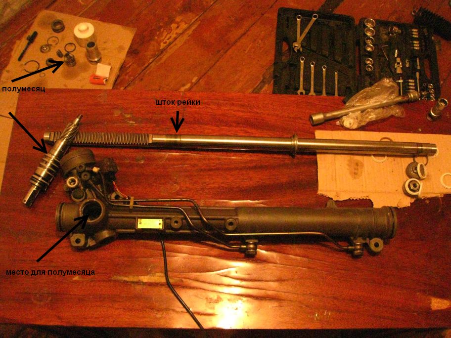 ,закрутилась как в масло )))) ,под пробкой находится пружина,она просела и оказывала малое давление на полумесяц который прижимает рейку к шлицам червя ,ее пришлось малость растянуть .В результате полумесяц был у меня совершенно новый,без износа.