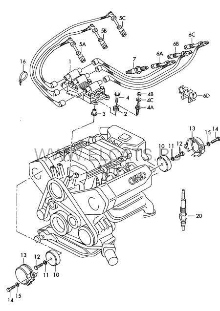 Позиция 5A Провод высокого напряжения Цилиндр 1 VAG 078 905 531 B