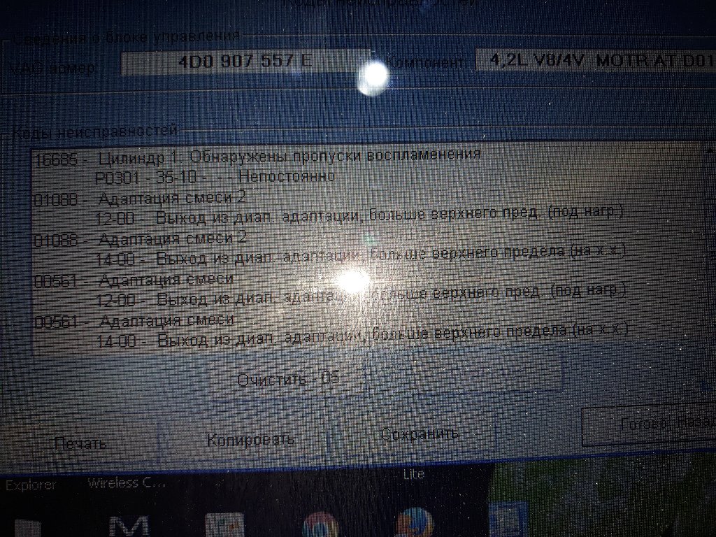 Всем привет!!!Недавно взял авоську 4.2 ABZ ,начались у меня провалы в работе двигателя,на холодную редко когда хорошо прогретая чаще(тоисть когда обороты спали уже) ,особенно в положении D когда стоишь на светофоре ,САТ не горит,прочитал ошибки 01088 адаптация смеси 2 выход из диап адаптации больше верхнего предела под нагрузкой и на хх,00561 адаптация смеси выход из диап адаптации больше верхнего предела под нагрузкой и на хх,16685 1цилиндр пропуски воспламененияP0301-35-10 не постоянно,16684 обнаружены пропуски воспламенения P0300-35-10 не постоянно