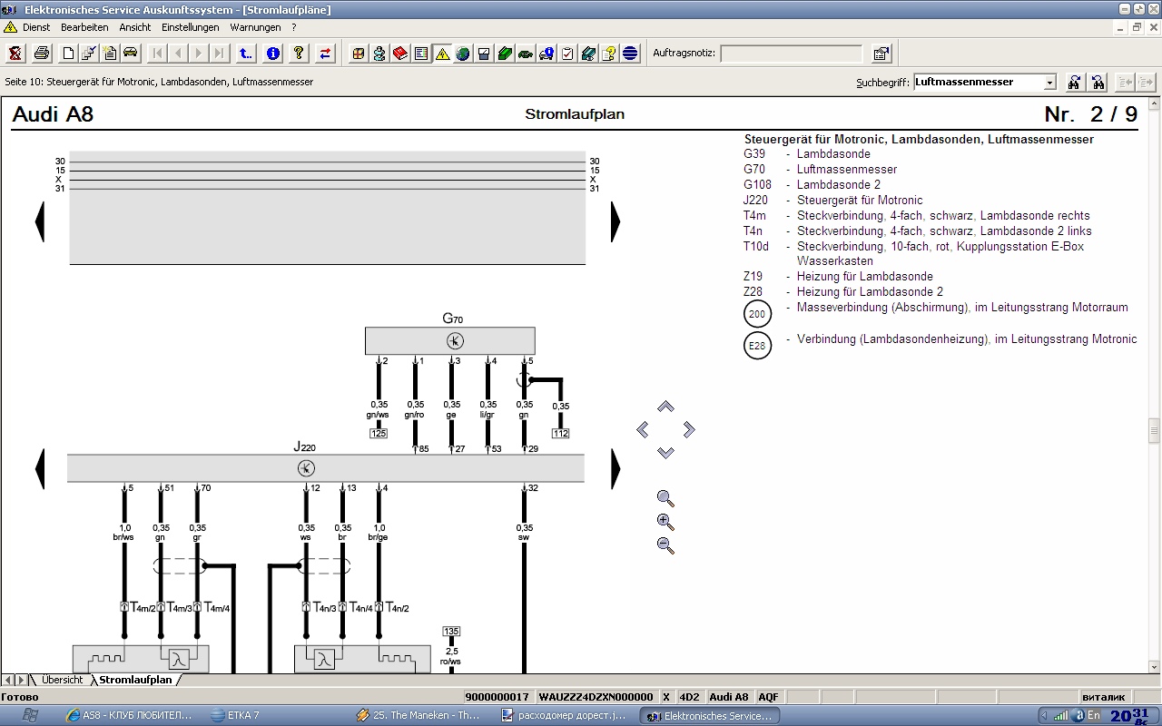 Судя по схеме два тонких провода идут на 18 и 19 контакт фишки "в" блока управления двигателем, два толстых черно-красн. и коричн. надо дальше по адресам 90 и 50 искать на схеме. Но там засада может быть другая: в платино-покрытой волосине, я видел расходомер с волосиной(AQF) и с напылением на керамике(S8 дорест AKH), как бы в этом не таилась основная проблема взаимозаменяемости, но если разберешься пиши-интересно.