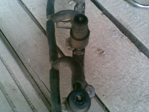 2. в отделе запчастей к отечественным грузовикам подобрал сначала шланг по диаметру подходящий на форсунку (брал ее с собой), потом шланг, который бы входил в первый, потом еще один, который бы входил во второй с внутренним диаметром под трубочку от промывки карбюратора, итого три шланга на сумму 210 руб.