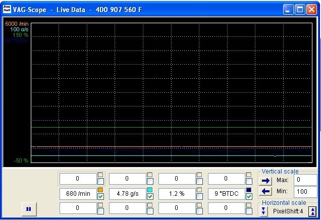 Для этого заходишь в Вагкоме в каналы, где расходомер видно, потом в VagScope, ставишь галочки на данные по расходомеру и по оборотам двигателя. Делаешь скриншот графика...