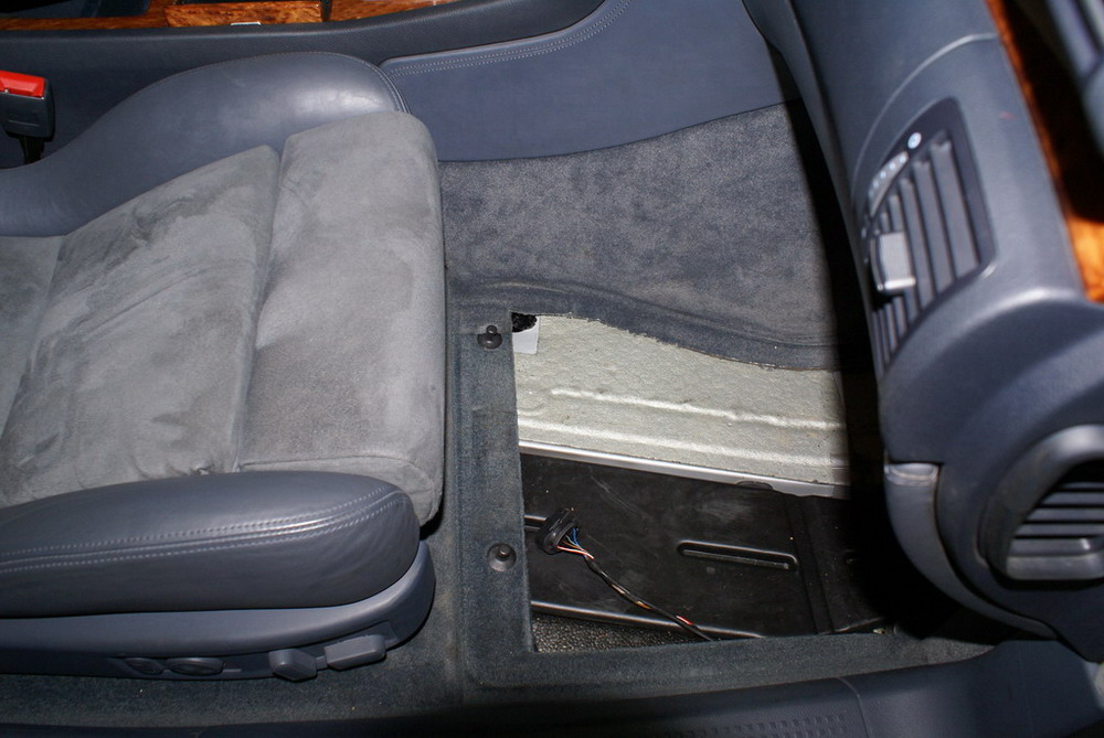 На следующих фото места вывода проводки для левого и правого дачиков,расположенных за катализатором. Вид из салона.