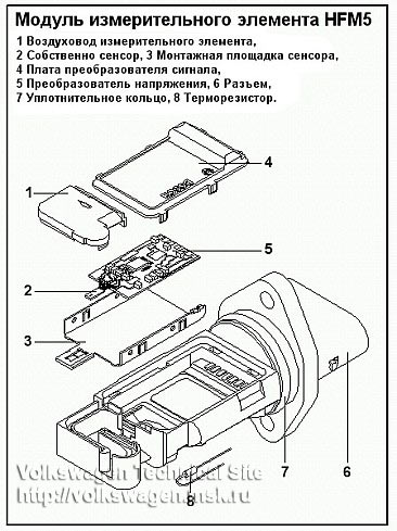 Термоанемометрические расходомеры воздуха, так называемые Hot film air flow sensor (meter)- HFM. В автомобилях VW Audi в основном применяются расходомеры Bosch и Pierburg.