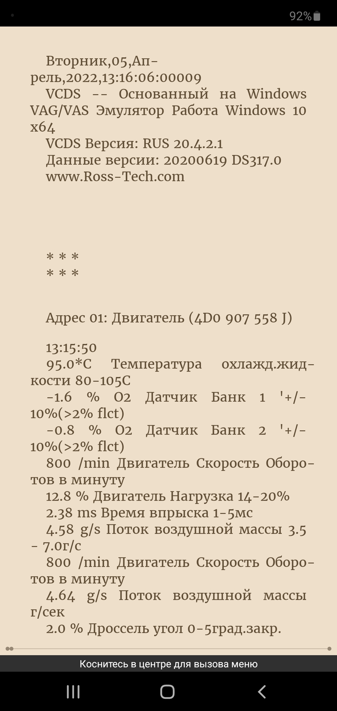 Зайти в группы измеряемых величин двигателя, найти там показания расходомера на холостых и выложить их в студию.