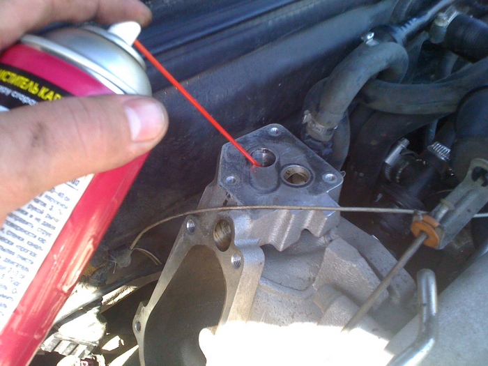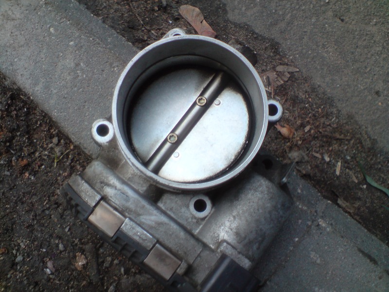 Кстати - для рестайловых моделей, где нежелательно рукой крутить пластину, можно делать так: снять дроссель(во всяком случае в первый раз, потом будешь знать куда тянуться не снимая его), подключить обратно разъем, включить зажигание и надавить педаль газа чем-нибудь... открытый дроссель чистить гораздо удобнее.