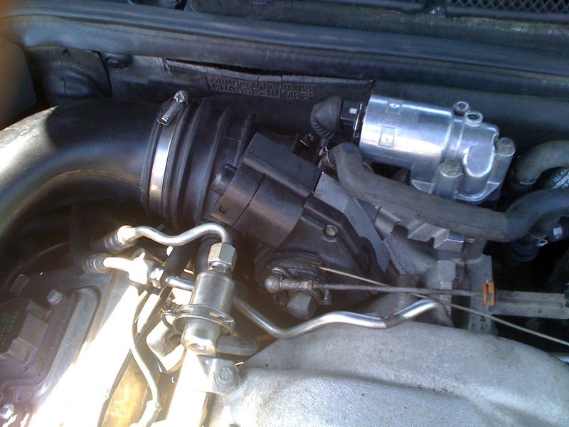 Для демонтажа дроссельной заслонки, демонтируем верхние крышки (двигателя), шланг воздуховода. Снимаем фишки с датчиков (аккуратнее с фиксационными скобами (маленькая кривая проволочка по верх разъема) иногда, они бесследно пропадают). Откручиваем 5 винтов с внутренним шестигранником на 8 (по-моему).
