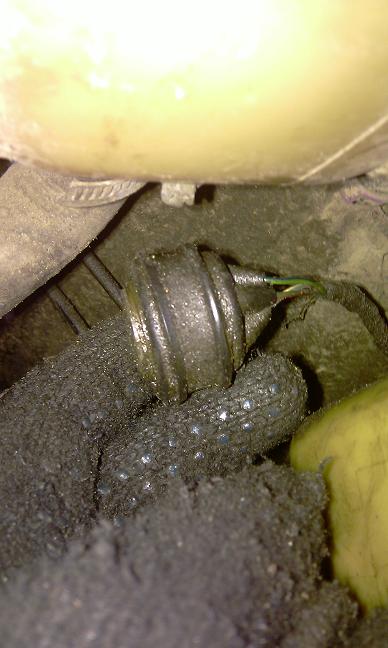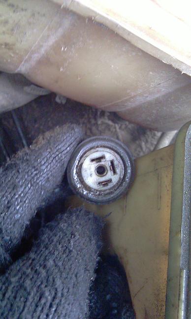 Разъем находится под бачком антифриза, провод уходит за левое крыло