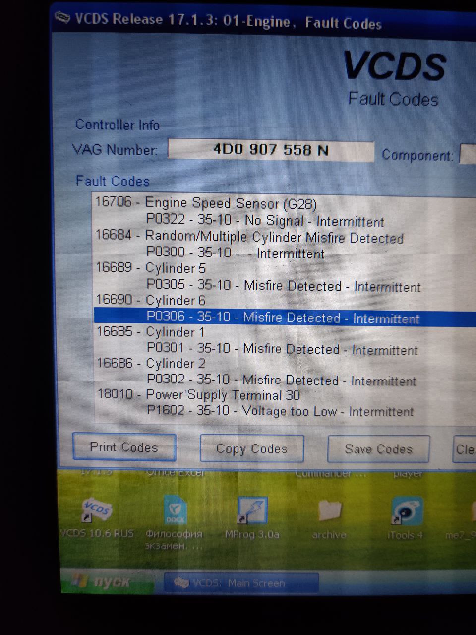 Подцепил вагком почитал ошибки двигла- все они на скрине. Сбросил все, машина пободрее первый раз попыталась завестись, но нет. После этого ни одной ошибки по мотору не удалось снять, хотя он и не заводится. Датчик положения кв приказал? Почему до этого при тщательном наблюдении не удавалось зафиксировать никаких критичных ошибок, хотя предпосылки были, а затем машина просто встала. Как-то странно.