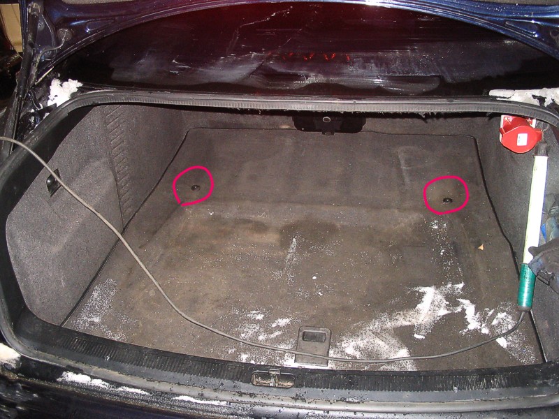 1. Багажник очищаем от шмурдяка, готовим кучу тряпок. Откручиваем пластиковые гайки, коврик долой!