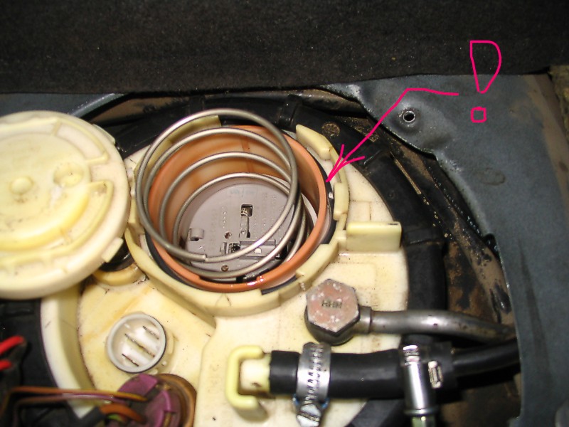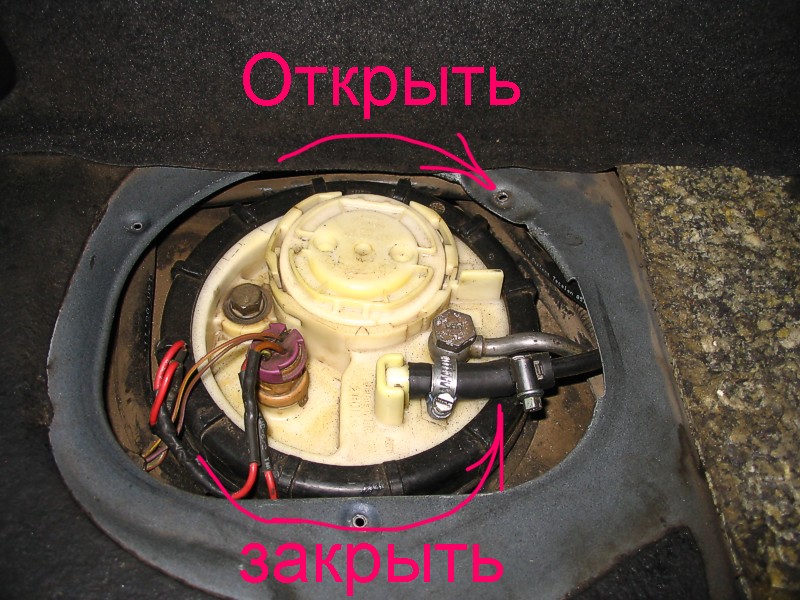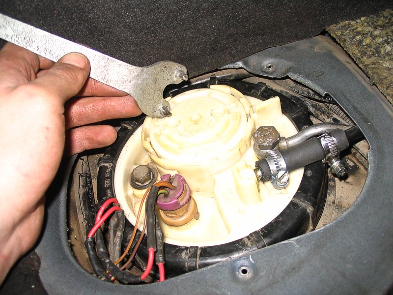 3. сбрасываем фишку бензонасоса, откручиваем напорную магистраль (ОСТОРОЖНО, попрет горючка), затем обратку, берем вагтул №1 (см ниже), откручиваем крышку измерителя
