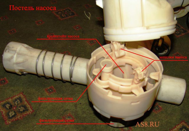 Редко насос умирает мгновенно, но иногда бывает и так. Обычно, бензонасос выходит из строя предсказуемо, постепенно, начиная подвывать или начав просто громко работать. Постепенно падает производительность, и, в какой то момент, его заклинивает. Отличная шумоизоляция Ауди А8, подвешенный на сайлентблоках насос, мешают водителю услышать этот характерный, предшествующий остановке насоса, звук. Таким образом, не всегда водитель слышит подозрительные звуки, а иногда их и правда нет. Хорошо работу насоса слышно через открученную пробку заливной горловины бензобака. Главное, не слушать насос с сигаретой в зубах. )))