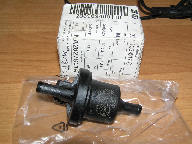 ну ладно, дней через 7-10 сфотаю...Akin писал(а):Да уж, да уж, форум требует подробного фотоотчета всех проводимых с клапаном манипуляций.vovvw писал(а):Макс, когдаж ты фотки то выкладывать будеш???Максим писал(а):поправлюсь, неисправен не абсорбер, а клапан, он стоит отдельно его код.077 133 517 C крепиться за петлю к воздушному фильтру сзади.