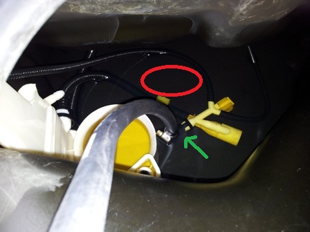 - Метровым куском шланга подключаю в инжектора указано зеленой стрелкой,а красным кругом обозначено место установки насоса