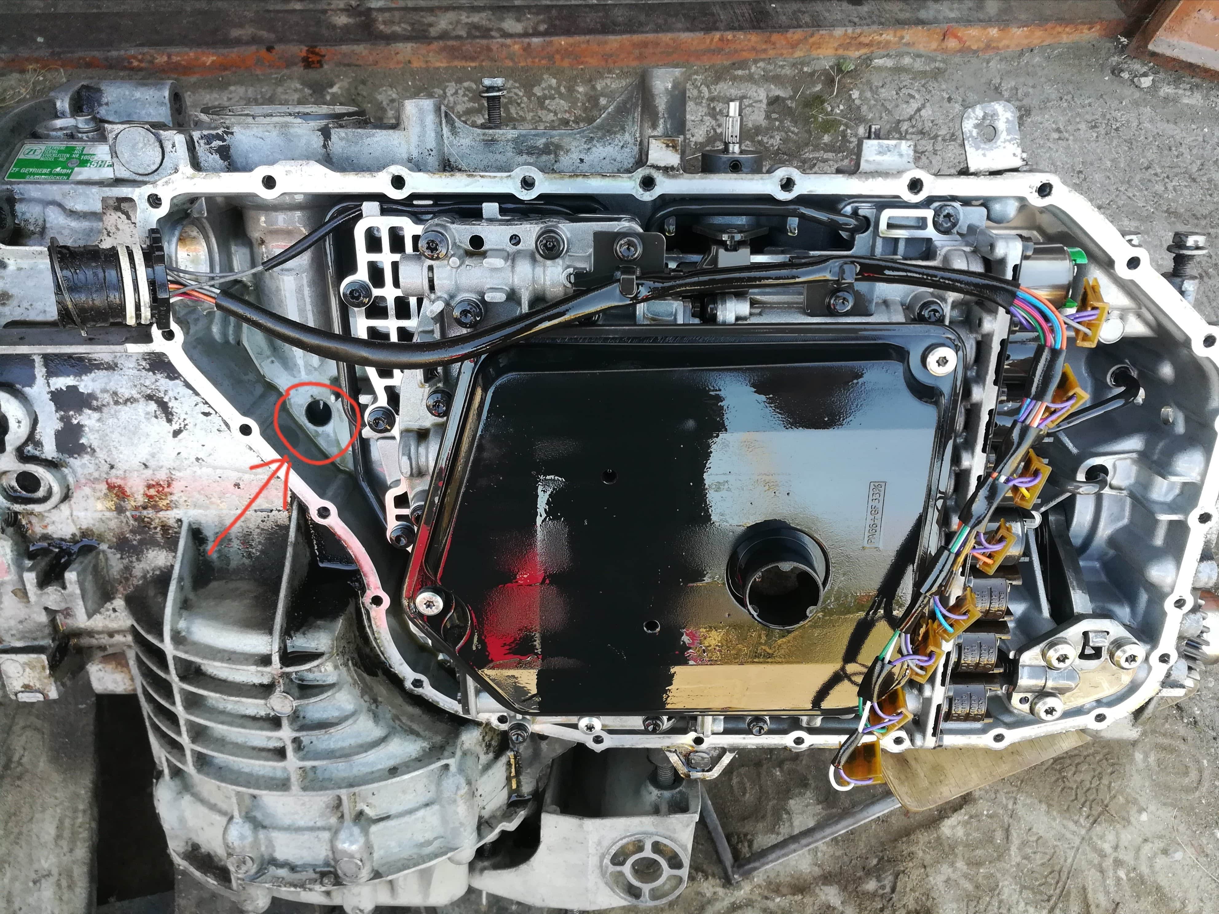 Вытаскиваю одну заглушку и масло потекло ручьём. Должно ли в эту полость попадать атф, где находится труба полуоси или нет? Масло попадает туда из отверстия (указал стрелкой).