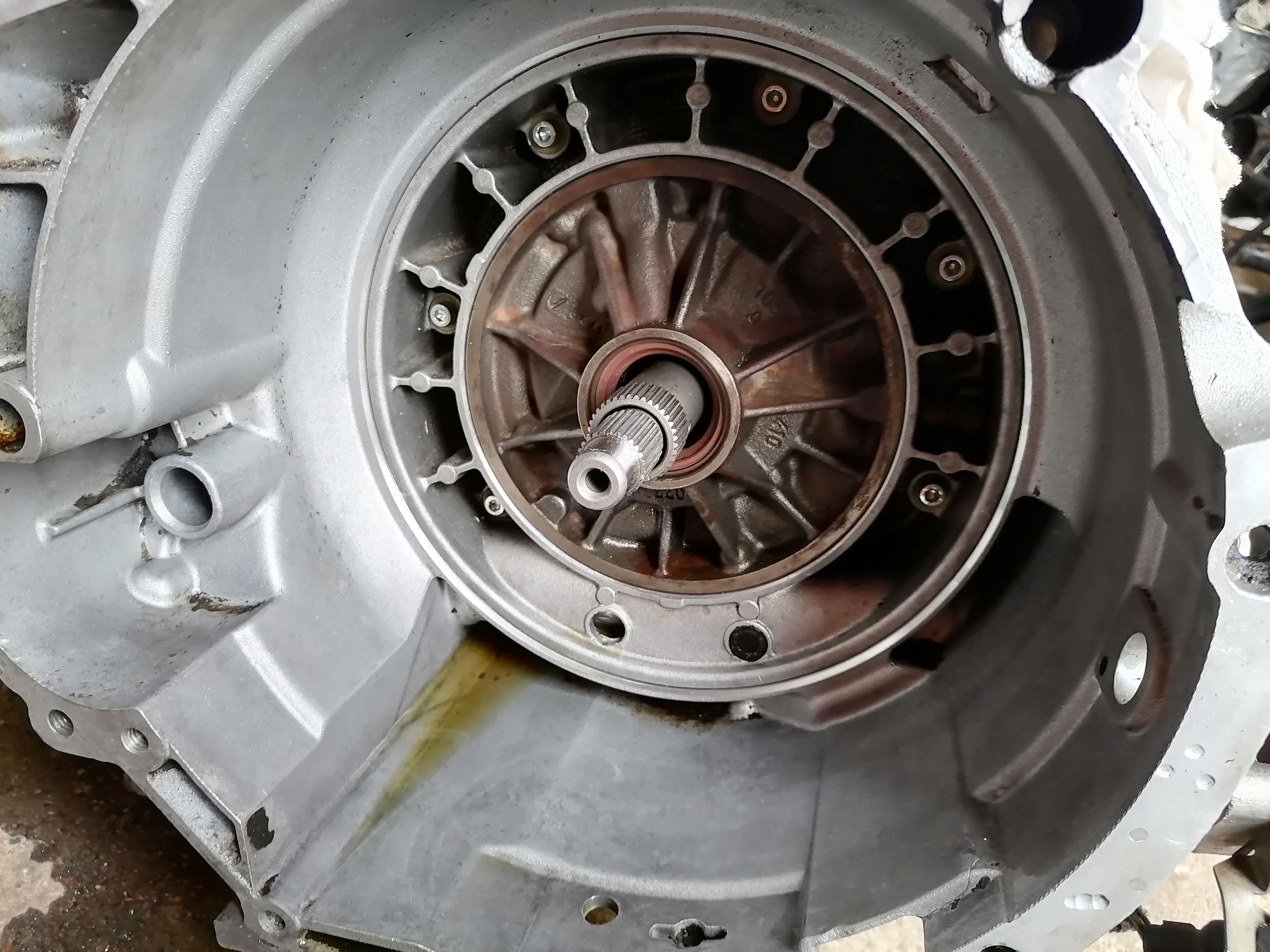 По приезду вытащил движок с коробасом и разобрал это дело. Заменил сальник левого фланца. Заменил двойной сальник который находится в шестерне, на фото видно в чем проблема. А вот сальник коленвала оказался сухой! Сначала думал значит течёт сальник масляного насоса АКПП куда вставляется гидротрансформатор. Но по случайности обнаружил что масло течет из-под черных прорезиненных заглушек нижних двух болтов масляного насоса АКПП. Кстати у меня их в комплекте уплотнений АКПП не оказалось, и я поставил старые.