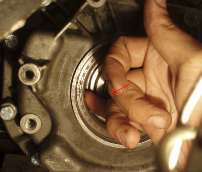 С внутренней стороны крышки отвёрткой выбиваем наш давно уставший сальник...