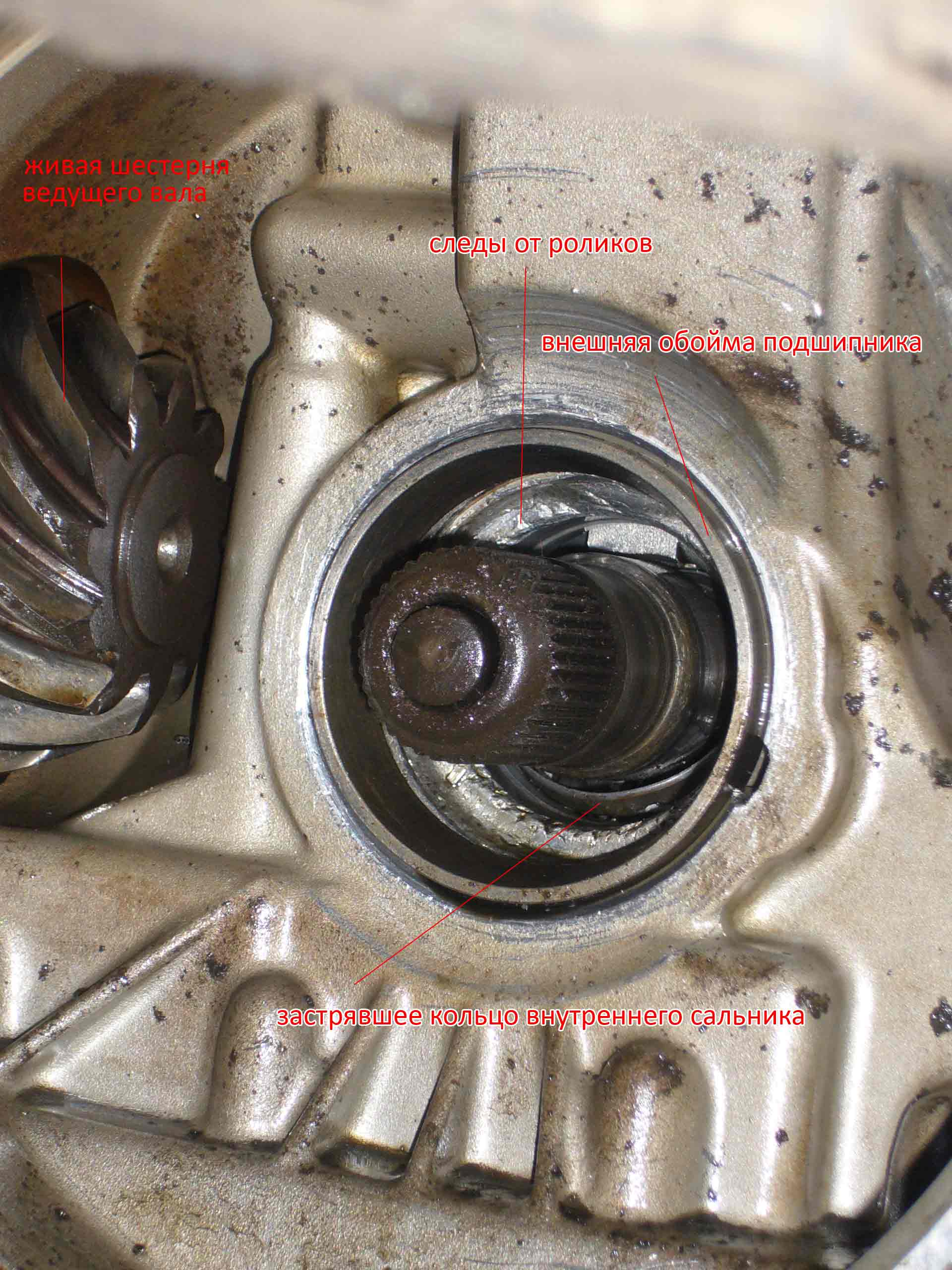 Надо сказать, что я периодически доливал масло в диф, дабы облегчить его страдания, но почти из 1000 грамм масла за два дня уходило 600, оставалось то, что было ниже уровня сальника, который обнимает фланцевый вал, чего недостаточно для нормальной работы этого узла. Как оказалось, в последствие важным стало наблюдение за тем, как входит масло в диф при доливке. В моём случае приходилось прыснуть немного и несколько секунд ждать когда оно просочится внутрь . Процесс этот растягивался на полчаса, количество впрыскиваний подсчёту не подлежит, но к этому мы ещё вернёмся в самом конце и выясним причину такой «непроходимости» масла…