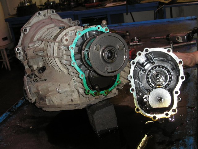 А теперь обращаем внимание на ту половину, которую мы сняли для того, чтобы увидеть эти шестерни. В ней имеется сальник, отделяющий масло АКПП от масла межосевоо дифференциала. В этот сальник входит верхняя шестерня с предыдущих фотографий.