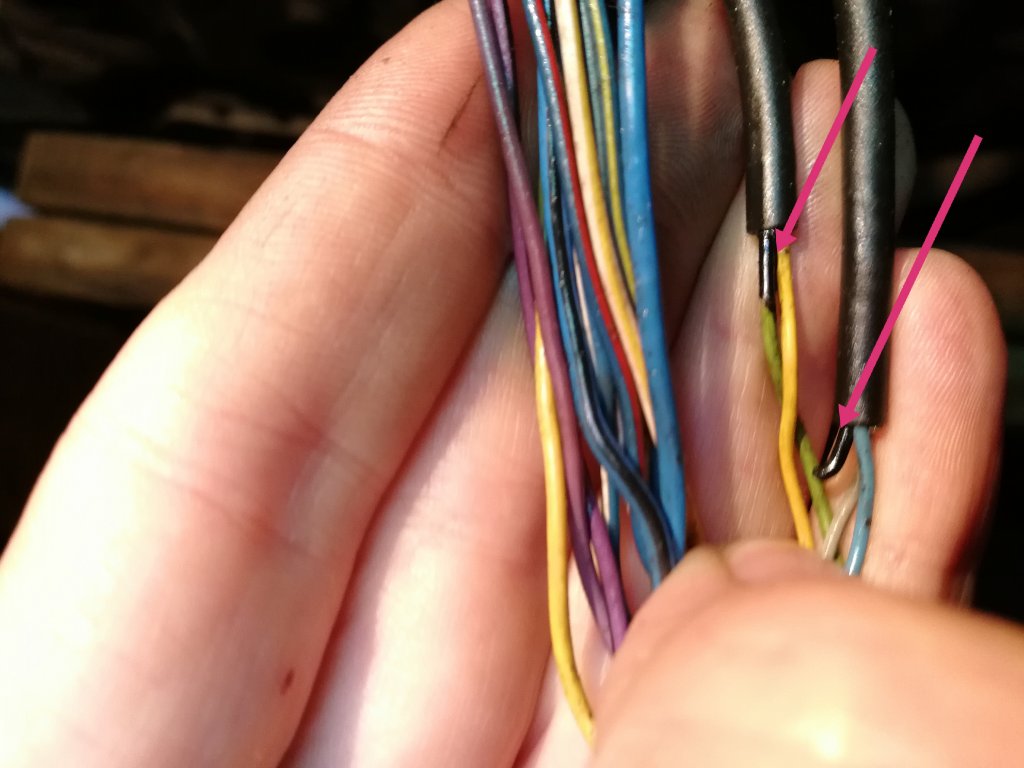 кабель с парой жёлтый + зелёный - это с датчика G38 (Gearbox speed sender). Он экранированный. Экран садится на пин 15 ЭБУ АКПП.
