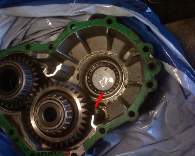 А теперь обращаем внимание на ту половину, которую мы сняли для того, чтобы увидеть эти шестерни. В ней имеется сальник, отделяющий масло АКПП от масла межосевоо дифференциала. В этот сальник входит верхняя шестерня с предыдущих фотографий.