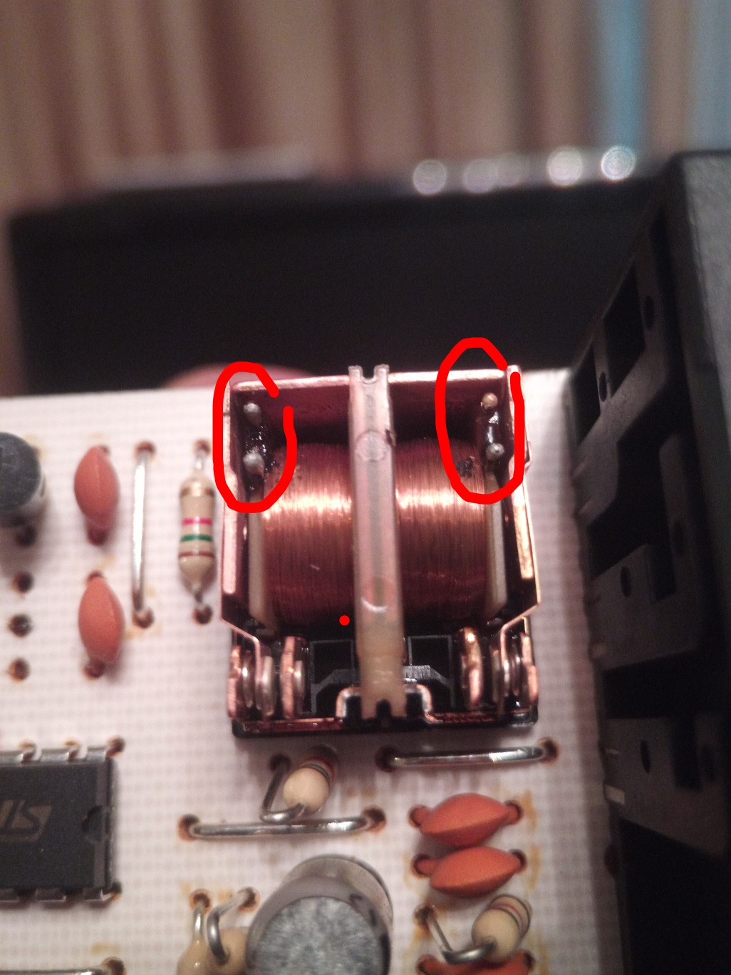 Паять кстати не со стороны платы, а внутри реле провода катушки к выводам контактов
