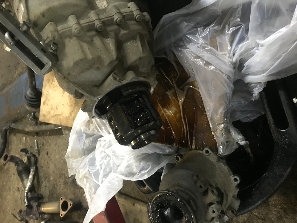 4.1) Снятие промывка коробки с полным слитием масла с бублика шлангов и т.д. с заменой фильтра очисткой магнитов.