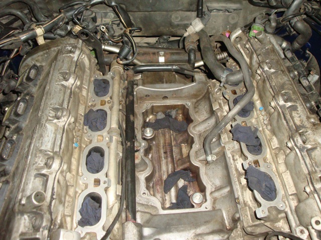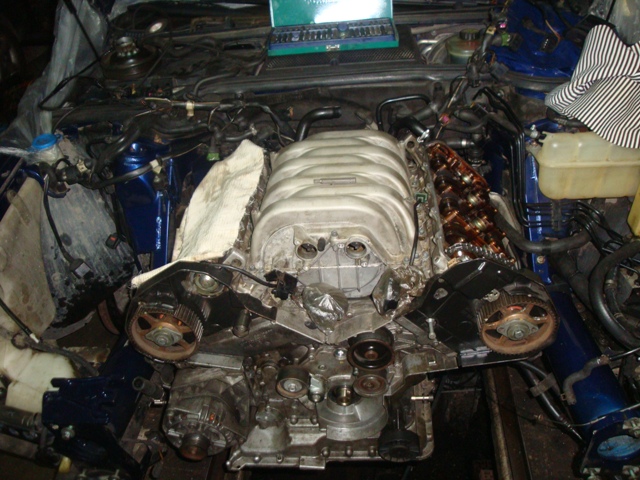 Вот очередной ремонт!недавно забрал машину из СТО.Менял масленные клапана в развале блока!- 059 103 175 A Мотор стал работать гораздо тише.Смотрели метки,цепи,натяжители!Меряли компрессию.Все норм.Как писалось ранее,до этого менял прокладки голов,сальники распредвалов,масла,фильтра,свечи Denso,катушки Hitachi..вымыт дросель,форсунки,новый грибок,новый насос VDO (фото есть)... Забрав машину,обратил внимание,что капает из под машины масло!До СТО,нигде не капало... посмотрели,потекло из заднего сальника коленвала и переднего!Масло приходиться подливать.Соседи уже во двор не пускают мою машину...))Кругом пятна)) Да и сам,Я нелюблю когда что то неисправно... Поэтому Я решил скинуть мотор,поменять все что необходимое!Жалею что сразу так не сделал!Ранее, денег на сервисах заплатил прилично!Под замену будут все расходники!Пересмотрю подушки,сайленты!За вчера было снято все навесное(кроме стартера).Снимаем мотор с балкой!Фото потихоньку делаю.Буду добавлять!
