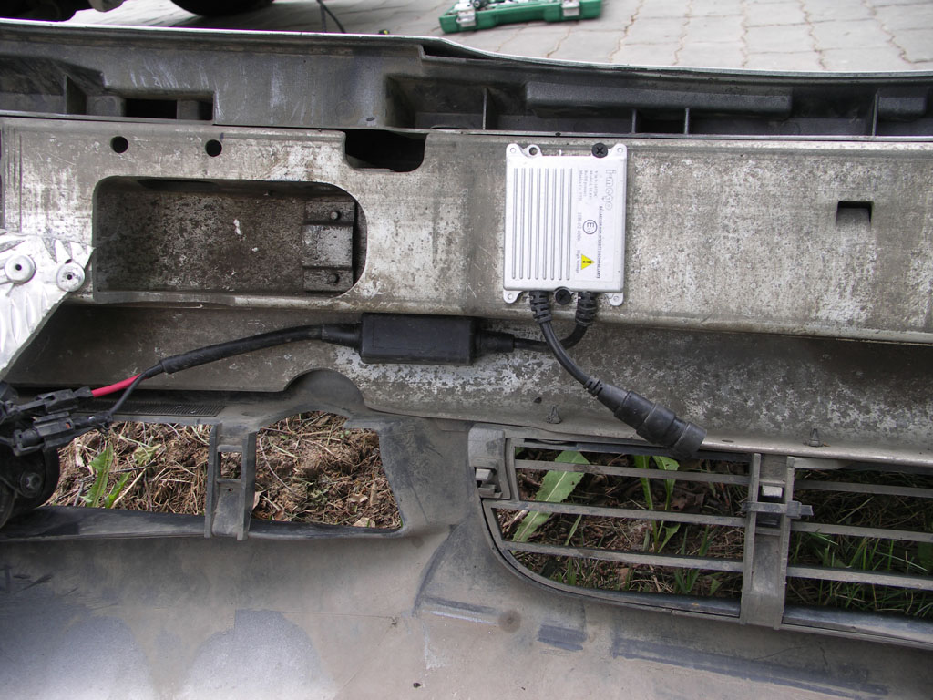 ну потом все было намного проще и не интереснее бормашинкой вырезал в решёточках отверстия, предварительно это сделал по шаблону из бумаги, что бы совсем всё не запороть. Ну ездить как все мне не захотелось, поэтому решил поставить себе третью пару ксены, после изучения туманок оказалось, что H3 лампы ксенона просто не встают туда из-за крепления. поэтому приколхозил их так использовать можно большие шайбы, но я просто распилил шпингалет, отверстия как раз совпали. блоки ксенона расположились на усилителе бампера таким образом соответствено предварительно обработав антикором. перед сборкой обнаружилось ещё 2 косяка, это клаксон и воздухан. Клаксон просто отогнул аккуратнее чуток назад.