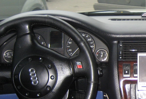 были установлены штатные колёса 245/45/18 + проставки-расширители по 25мм, руль от S8,
