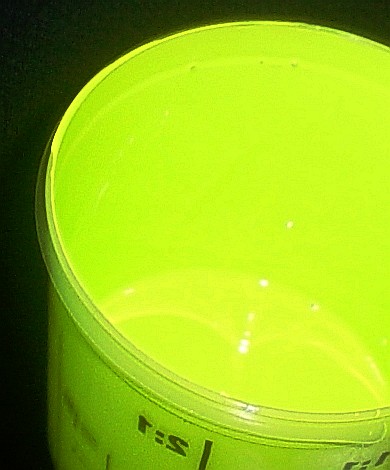 Подбор цвета занял определенное время. Когда, после перебора возможных вариантов с веерами образцов, было принято решение сделать маркерно-желтый, ядовитый до невозможности оттенок - с цветом решили поступить просто - вручную подобрать необходимую гамму. Неделя ушла только на подбор - колдовство с тестнапылениями и пигментами.